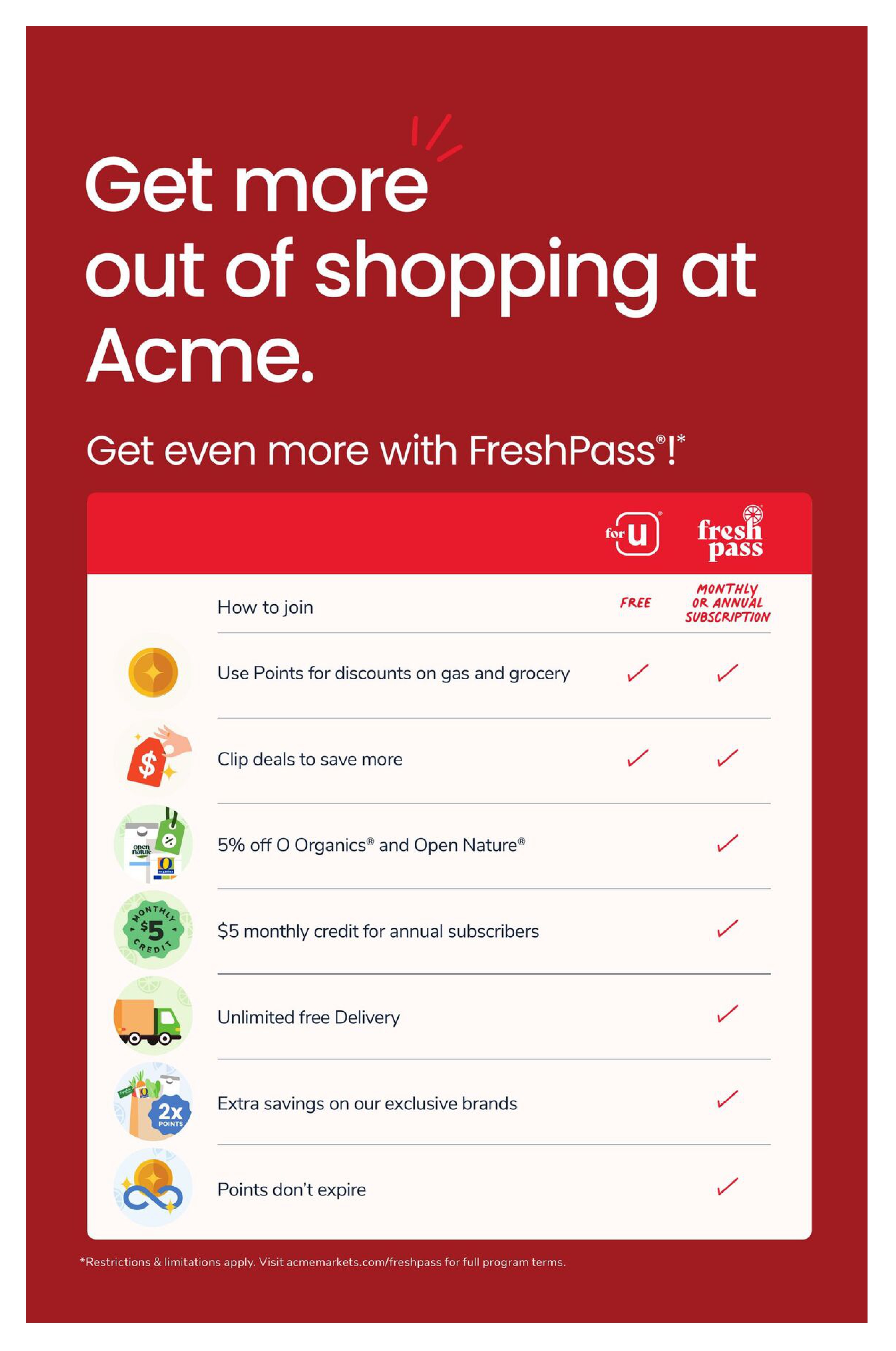When you join Acme’s loyalty program, you earn rewards every time you shop. You also get early access to Acme Weekly Flyers, special prices, and bonus points. It’s a great way to save more every week.